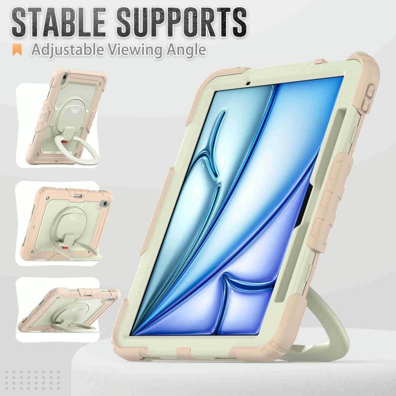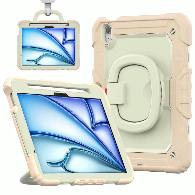 For iPad Air 11 2025 / 2024 Handle Silicone Hydric PC Tablet Case with Shoulder Strap(Rose Gold)