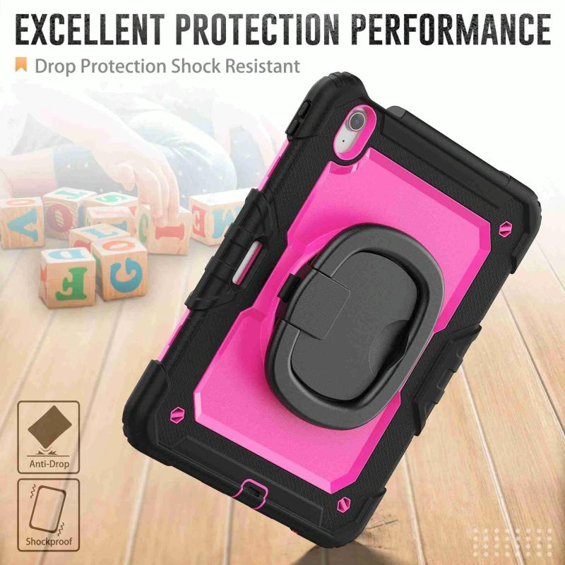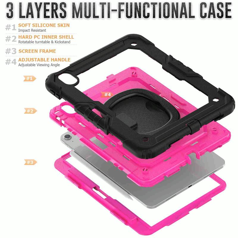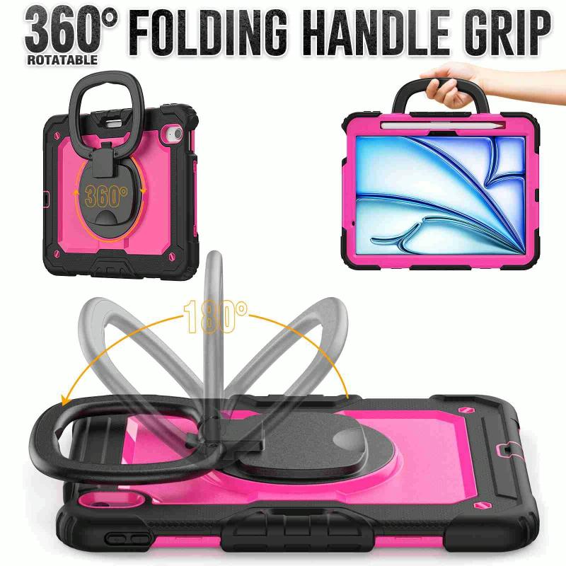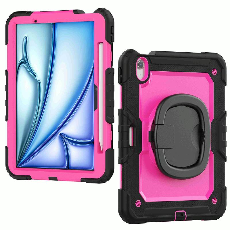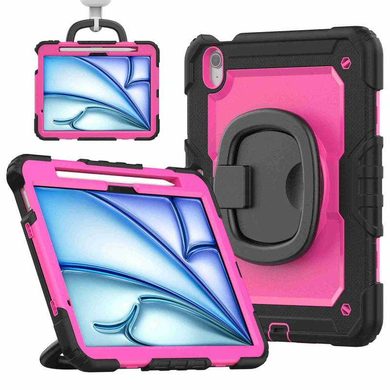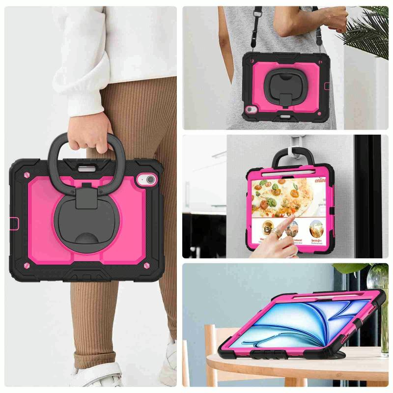 For iPad Air 11 2025 / 2024 Handle Silicone Hydric PC Tablet Case with Shoulder Strap(Rose Red PC)