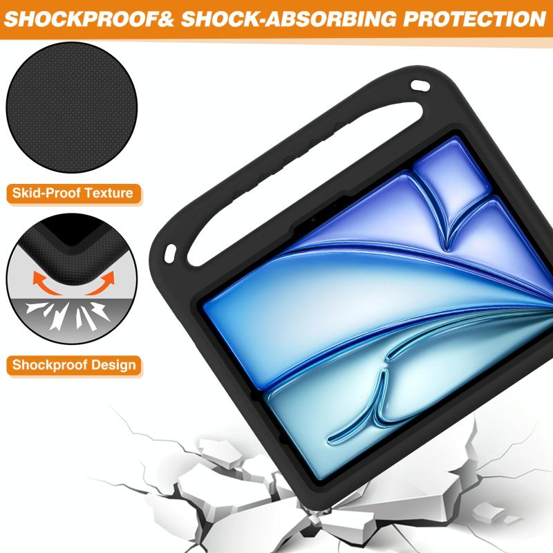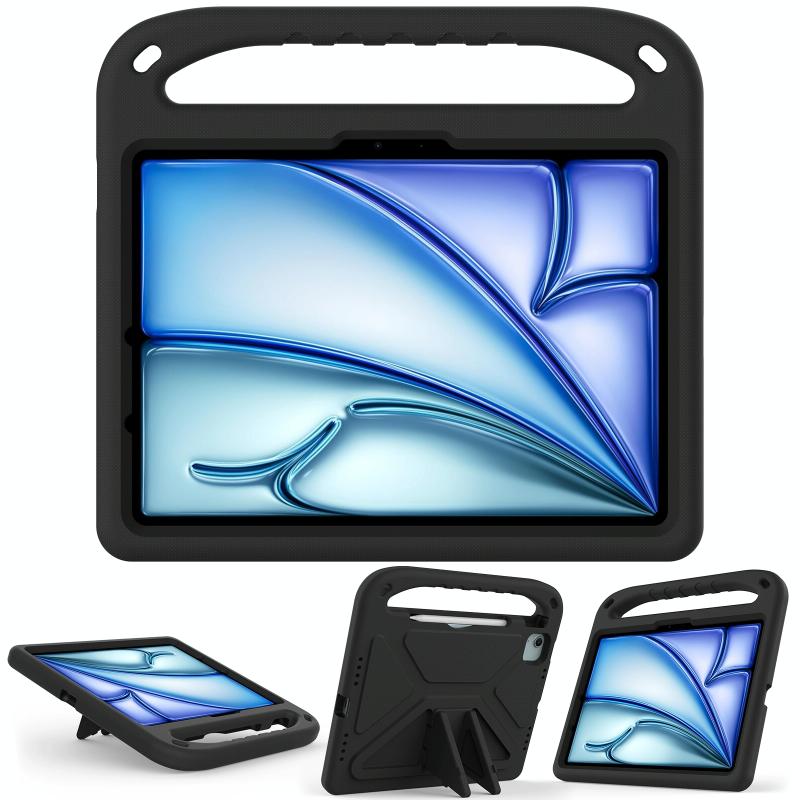 For iPad Air 11 2025 / 2024 / Pro 11 2024 Handle EVA Shockproof Tablet Case with Holder(Black)