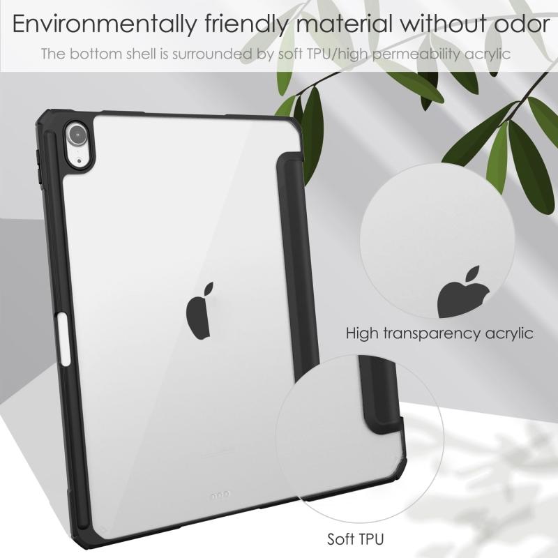 For iPad Air 11 2025 / 2024 Pure Color 3-fold Clear TPU Smart Leather Tablet Case(Black)