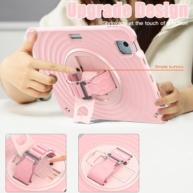 For iPad Air 11 2025 / 2024 Rotation Holder Silicone Hybrid PC Tablet Case(Pink)