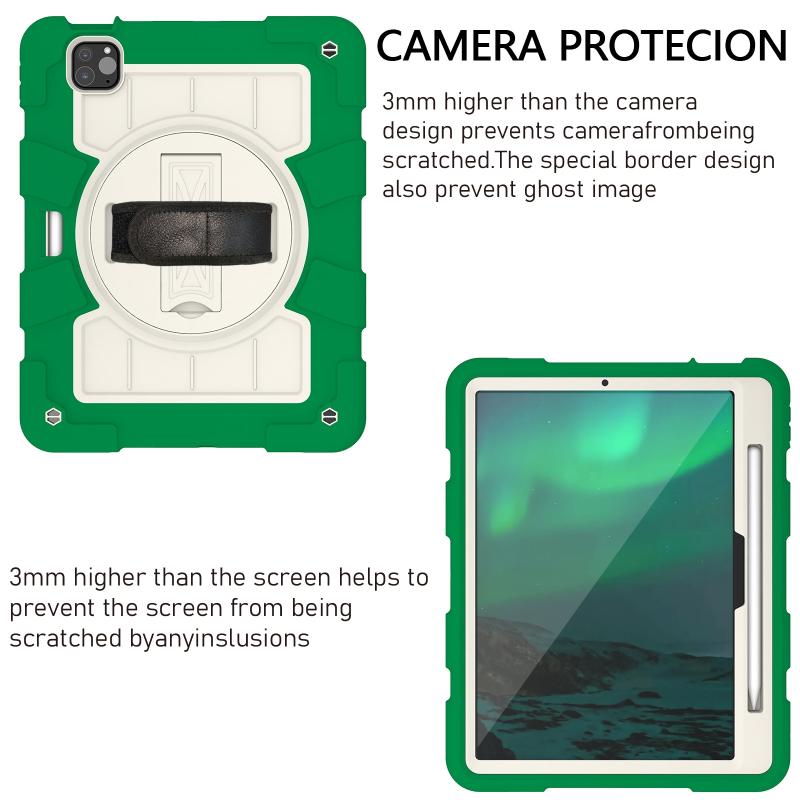 For iPad Air 11 2025 / 2024 Silicone Hybrid PC Shockproof Tablet Case with Shoulder Strap(Classic Green)