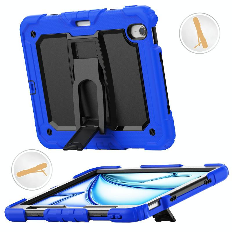 For iPad Air 11 2025 / 2024 Silicone Hydric PC Tablet Case with Shoulder Strap & Holder(Blue)
