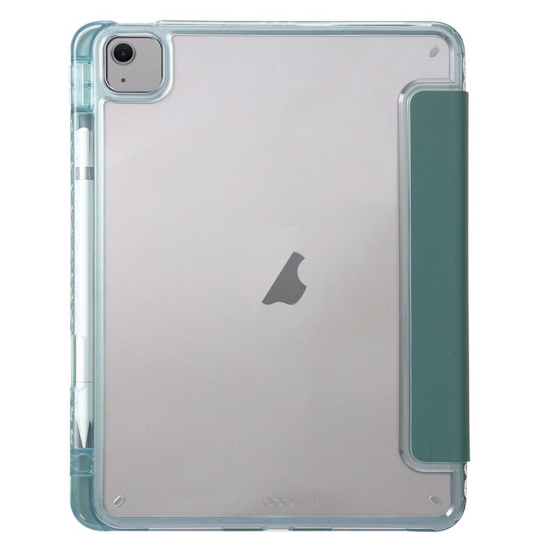 For iPad Air 13 2025 / 2024 Clear Acrylic 3-Fold Leather Tablet Case(Dark Green)
