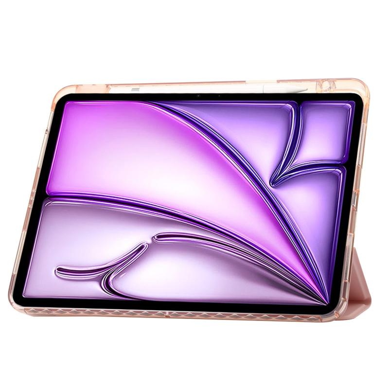 For iPad Air 13 2025 / 2024 Clear Acrylic 3-Fold Leather Tablet Case(Pink)