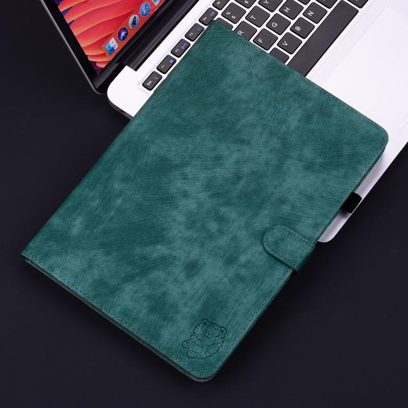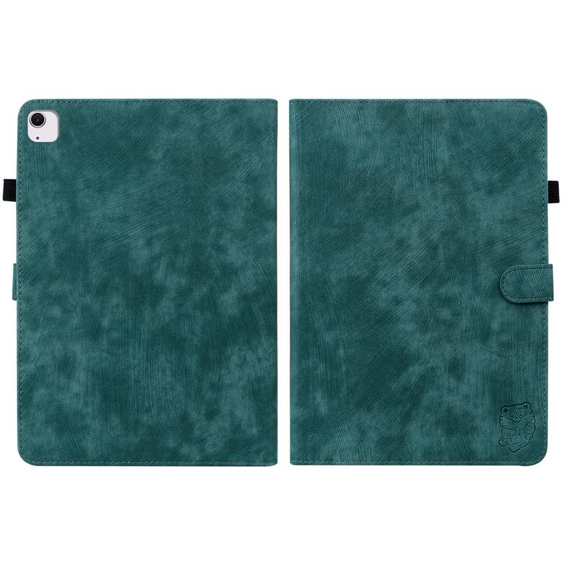 For iPad Air 13 2025 / 2024 Embossed Tiger Pattern Leather Tablet Case(Dark Green)