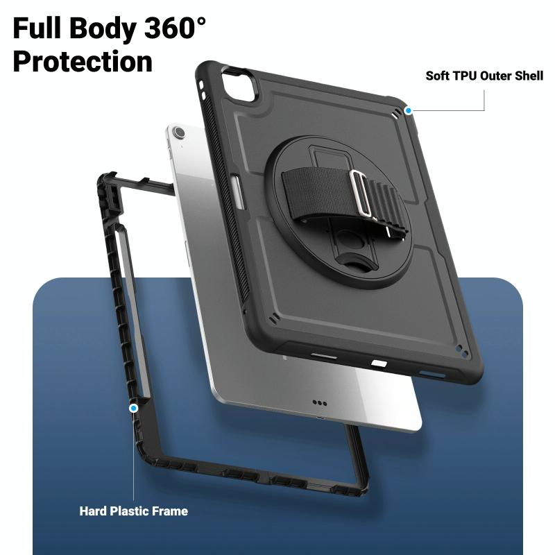 For iPad Air 13 2025 / 2024 Honeycomb Hand Grip Turntable Stand Tablet Case(Black)