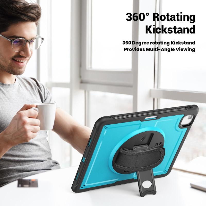 6. Ergonomic Hand Grip Design: Equipped with a comfortable hand strap at the back, this tablet case ensures a firm, ergonomic grip, ideal for prolonged use or on-the-go convenience.