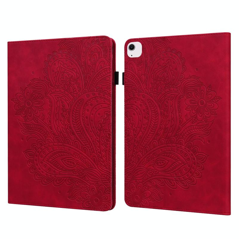 For iPad Air 13 2025 / 2024 Peacock Embossed Pattern Leather Tablet Case(Red)