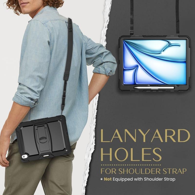 For iPad Air 13 2025 / 2024 Silicone Hydric PC Tablet Case with Shoulder Strap & Holder(Black)