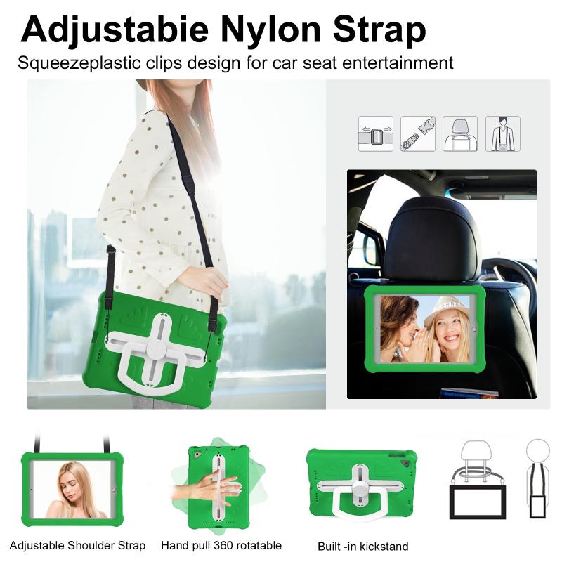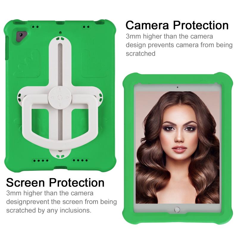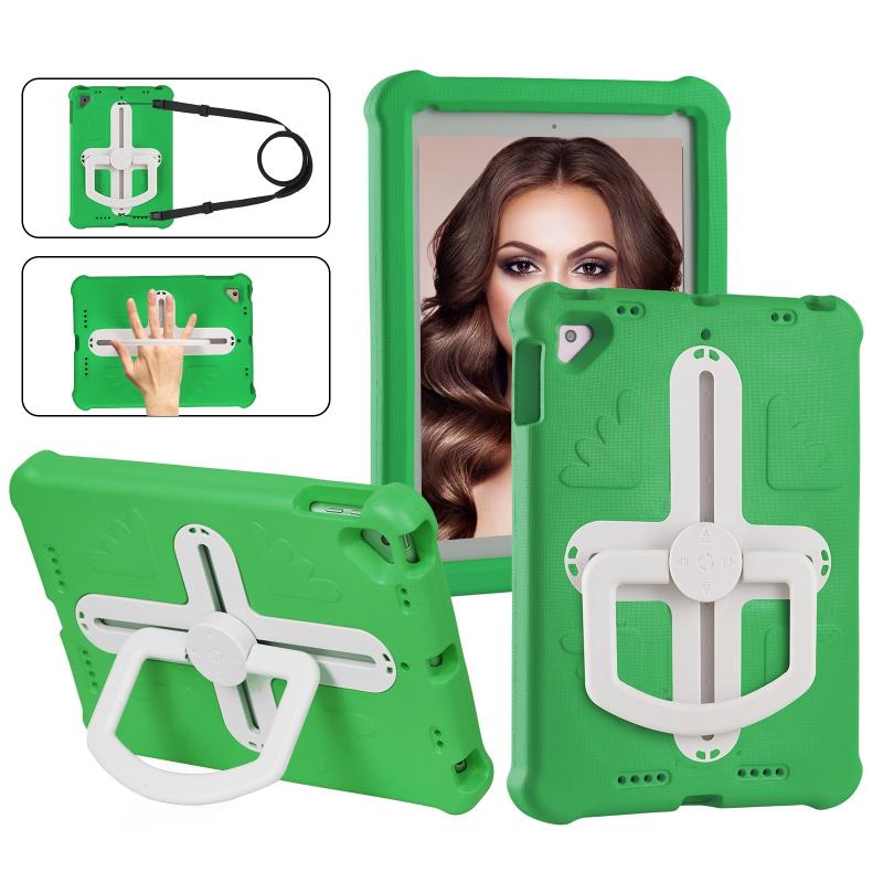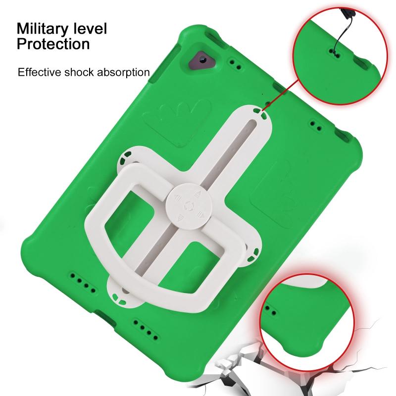 For iPad Air 2 / 9.7 2017 / 2018 Shield 360 Rotation Handle EVA Shockproof PC Tablet Case(Green Beige)