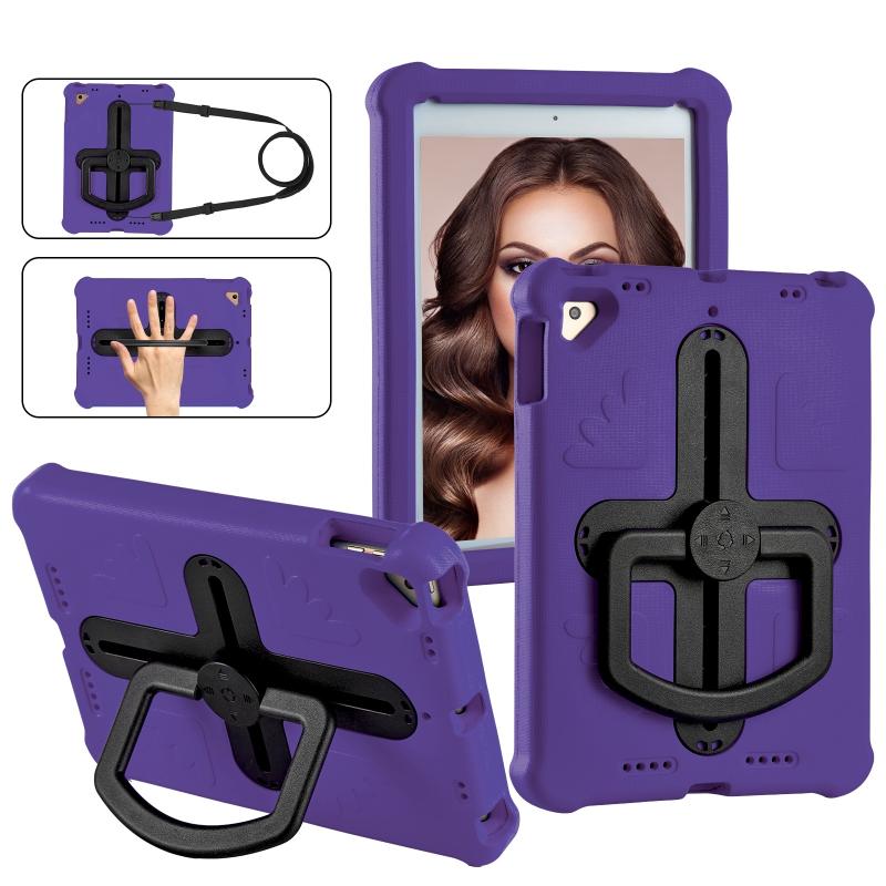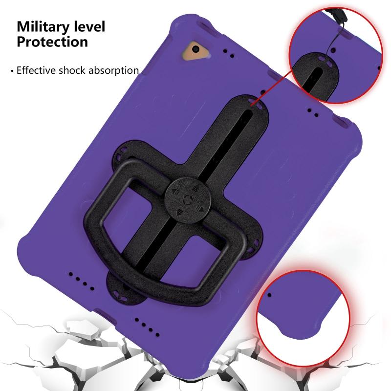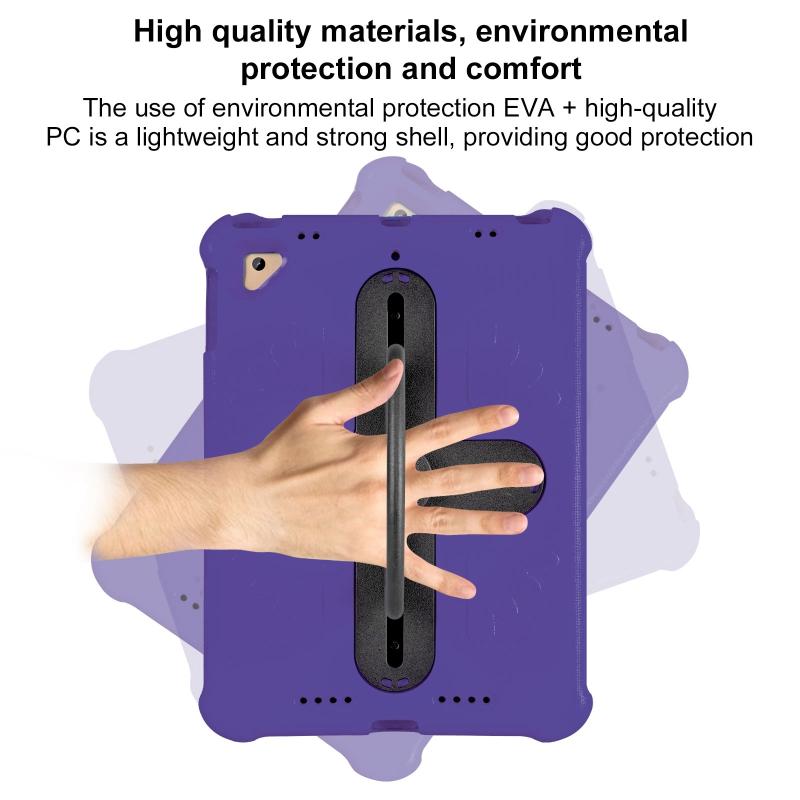 For iPad Air 2 / 9.7 2017 / 2018 Shield 360 Rotation Handle EVA Shockproof PC Tablet Case(Purple Black)