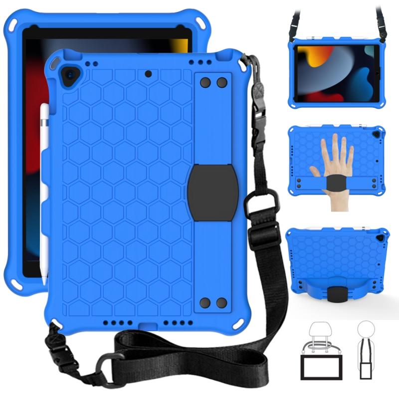 For iPad Air 2019 10.5 Honeycomb Design EVA + PC Four Corner Anti Falling Flat Protective Shell With Straps(Blue+Black)
