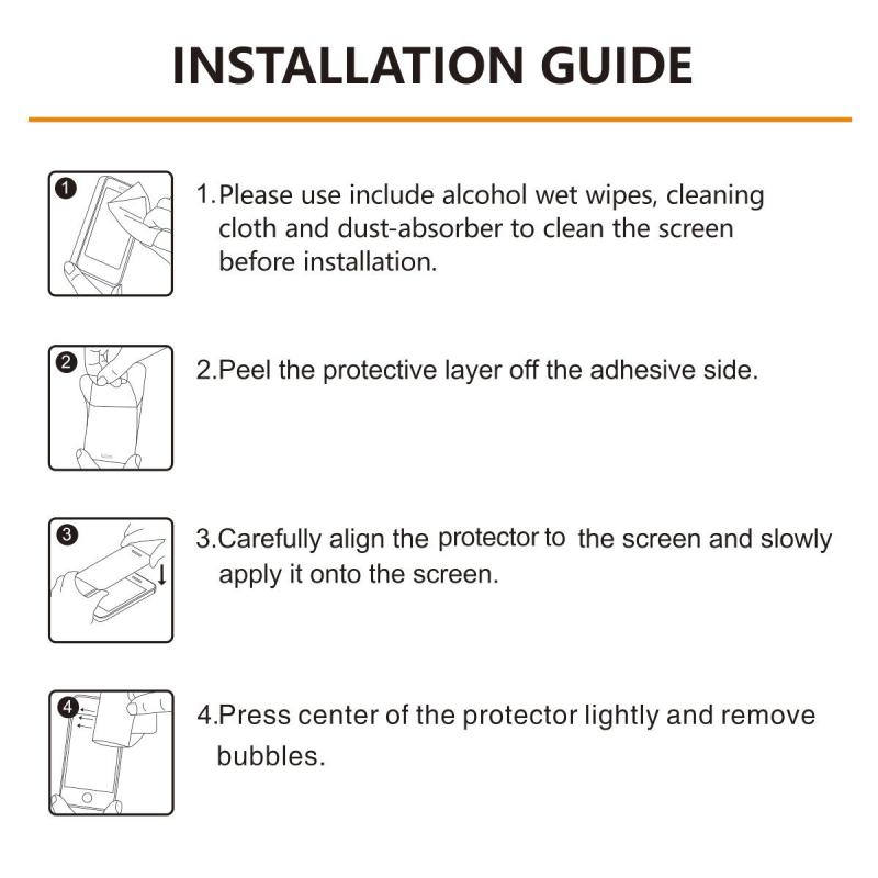 1. Please use the alcohol swab and the microfiber fabric to clean the LCD screen before installation.