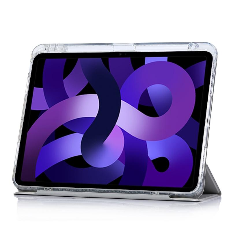 For iPad Air 2022 / 2020 10.9 3-Fold Lock Buckle Leather Smart Tablet Case(Grey)