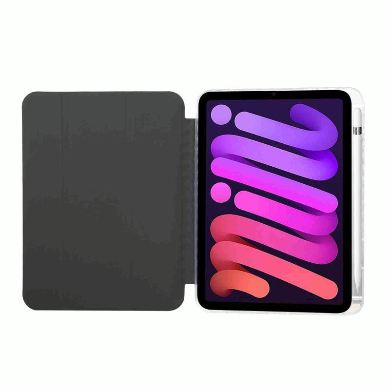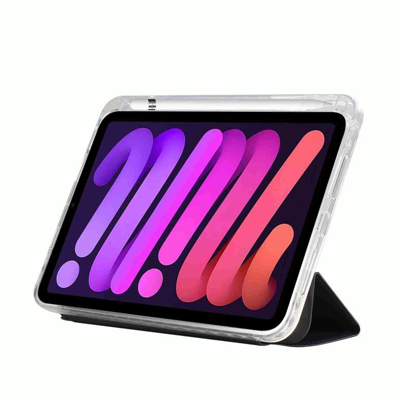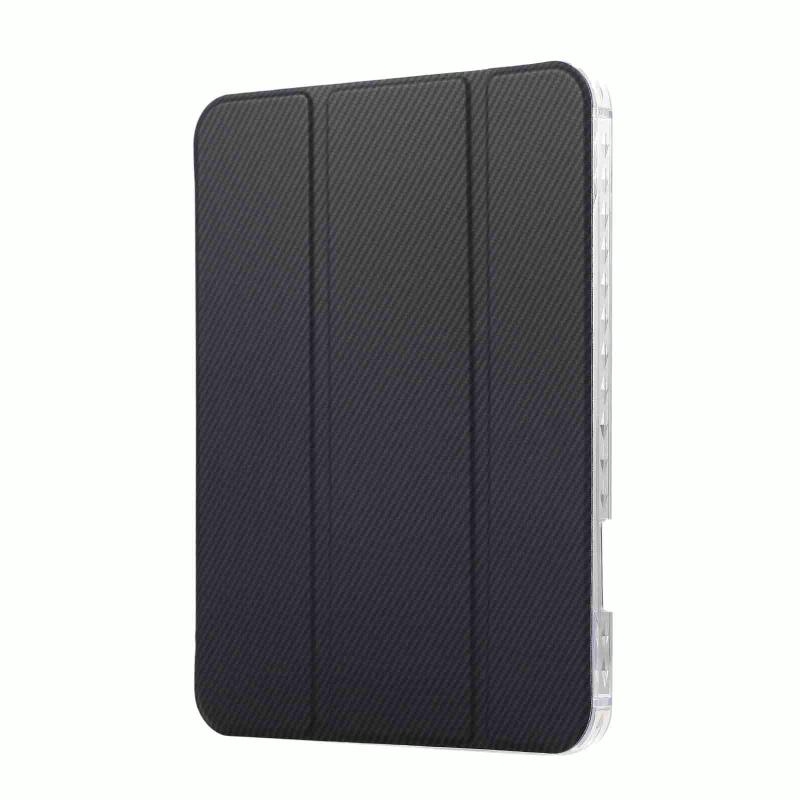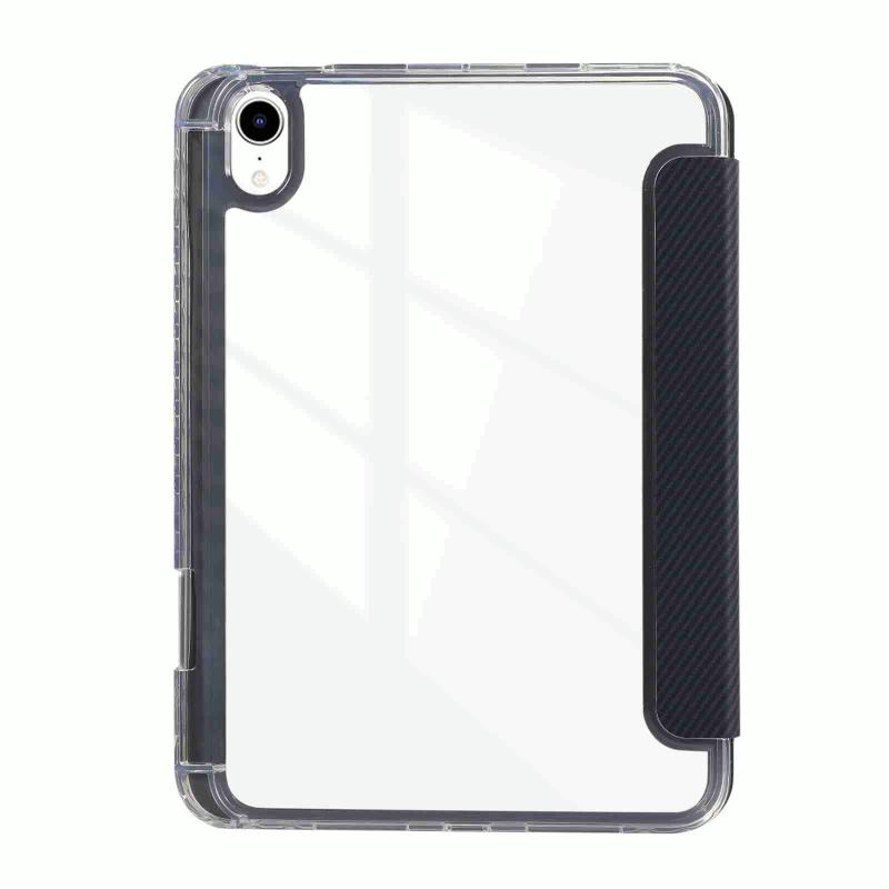 For iPad mini 2024 / mini 6 Carbon Fiber Clear Acrylic 3-Fold Leather Tablet Case(Dark Blue)