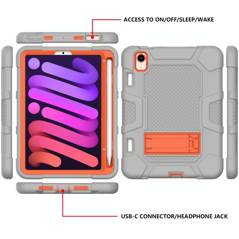 For iPad mini 2024 / mini 6 Contrast Color Robot Silicone + PC Tablet Case(Grey Orange)