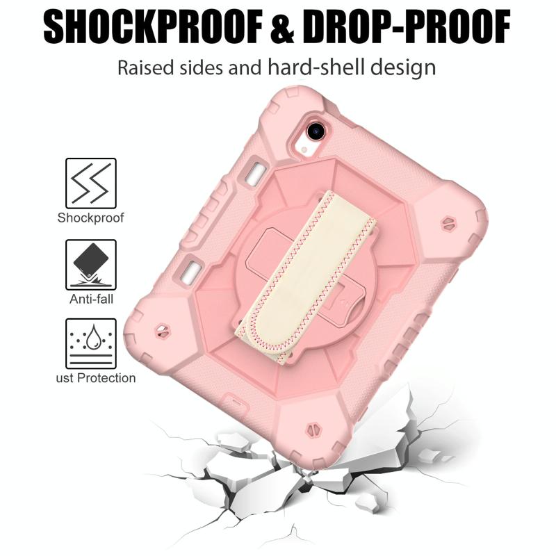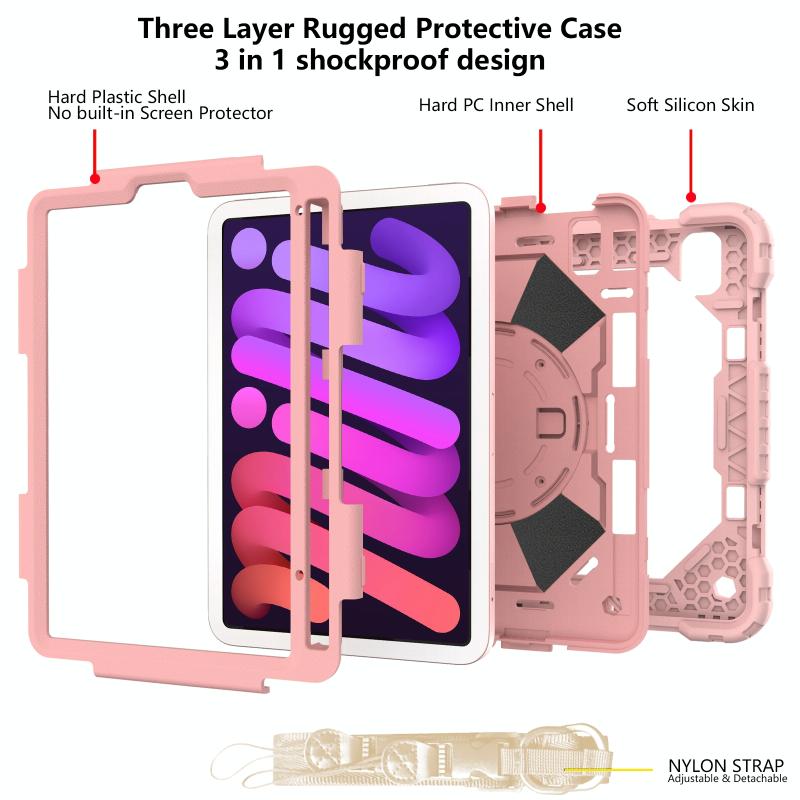 For iPad mini 2024 / mini 6 Contrast Color Robot Silicone + PC Tablet Case with Shoulder Strap(Rose Gold)