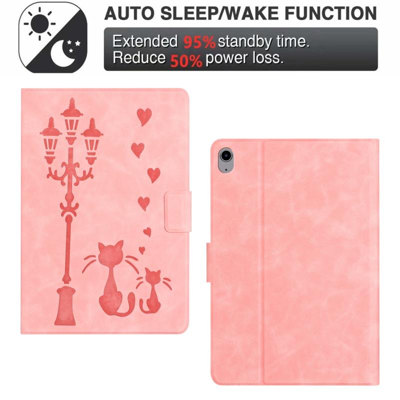 For iPad mini 2024 / mini 6 Embossed Couple Cat Smart Tablet Leather Case(Pink)