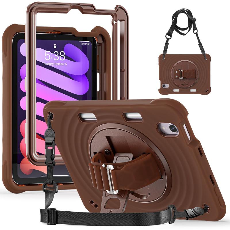 For iPad mini 2024 / mini 6 Rotation Holder Silicone Hybrid PC Tablet Case(Chocolate)