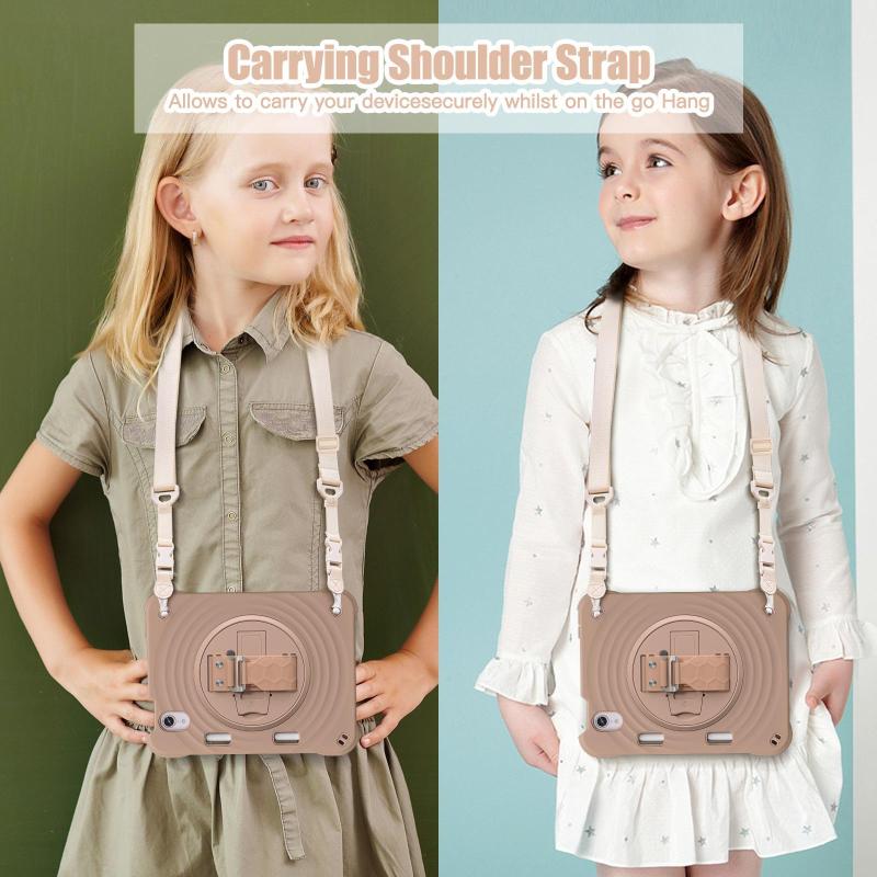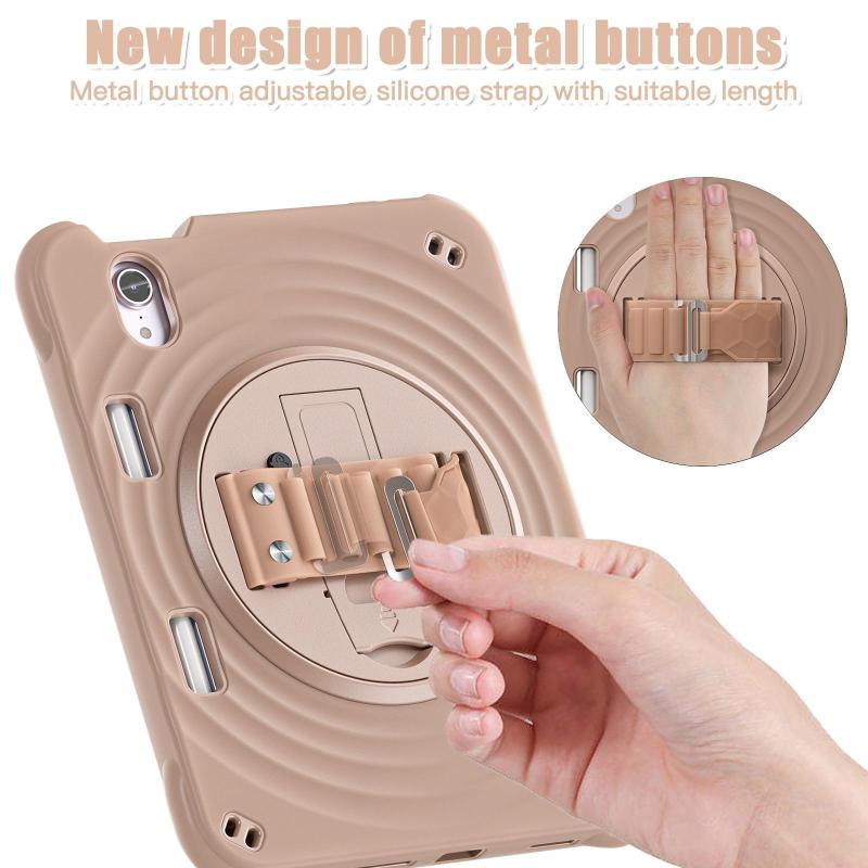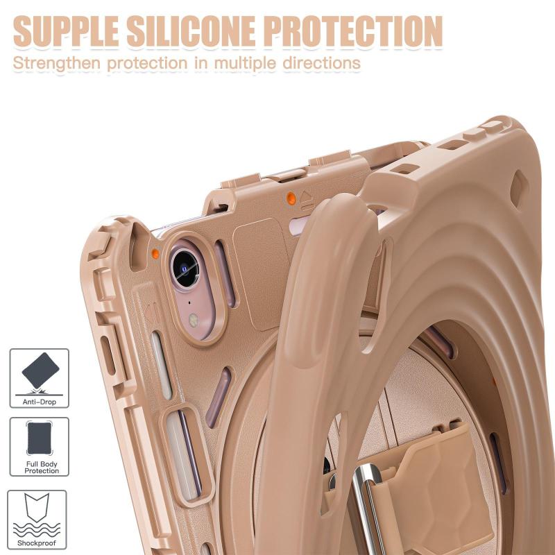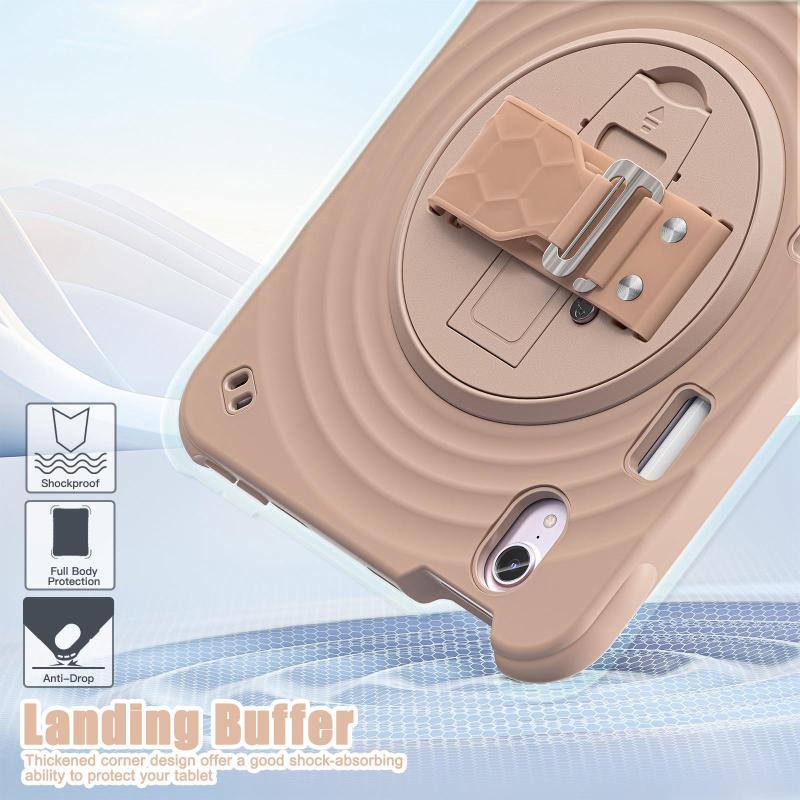 For iPad mini 2024 / mini 6 Rotation Holder Silicone Hybrid PC Tablet Case(Light Coffee)