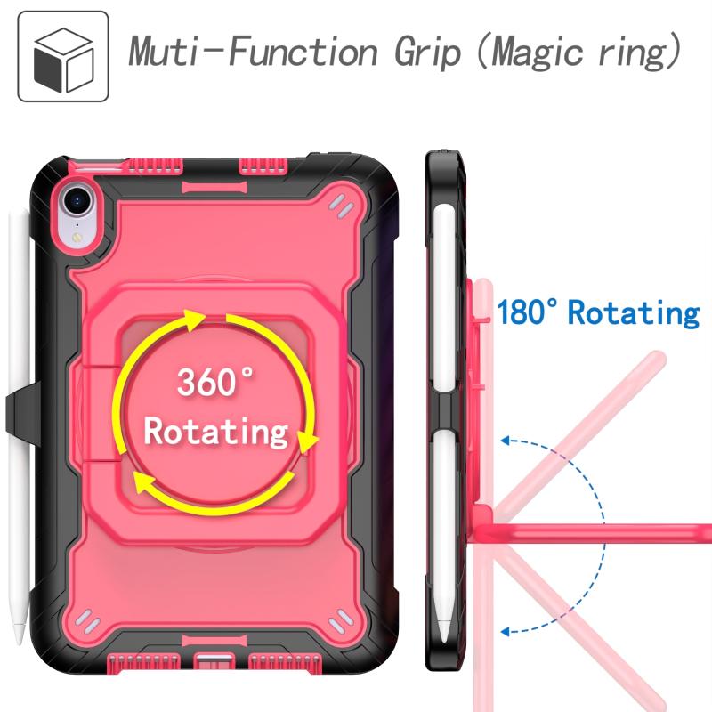 For iPad mini 2024 / mini 6 Silicone + PC Bracelet Holder Tablet Case(Black + Rose Red)