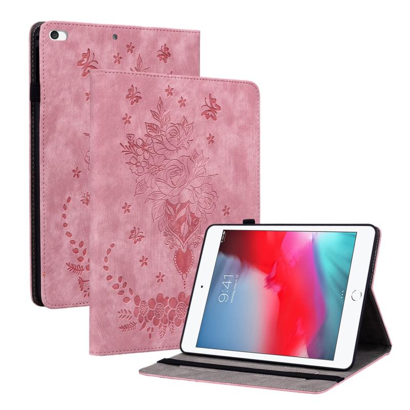For iPad mini 5 / 4 / 3 / 2 / 1 Butterfly Rose Embossed Leather Smart Tablet Case(Pink)