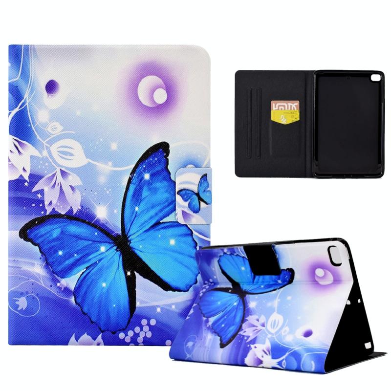 For iPad mini 5 / 4 / 3 / 2 / 1 Electric Pressed TPU Smart Leather Tablet Case(Blue Butterfly)