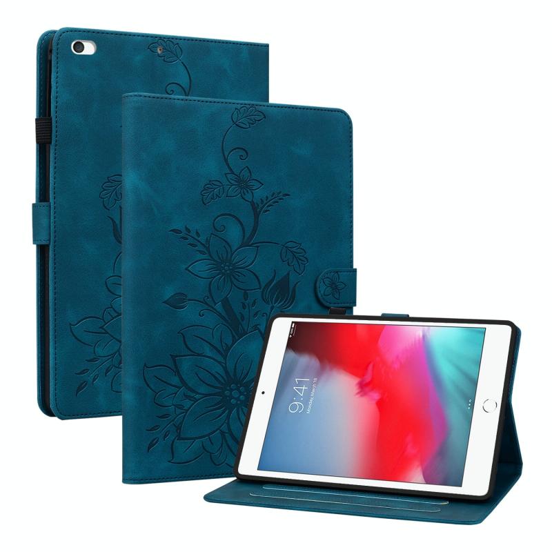 For iPad mini 5 / 4 / 3 / 2 / 1 Lily Embossed Leather Smart Tablet Case(Dark Blue)