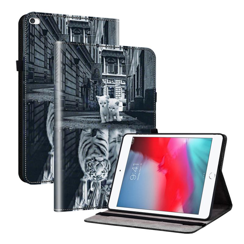 For iPad mini 5 / 4 / 3 / 2 Crystal Texture Painted Leather Smart Tablet Case(Cat Reflection Tiger)