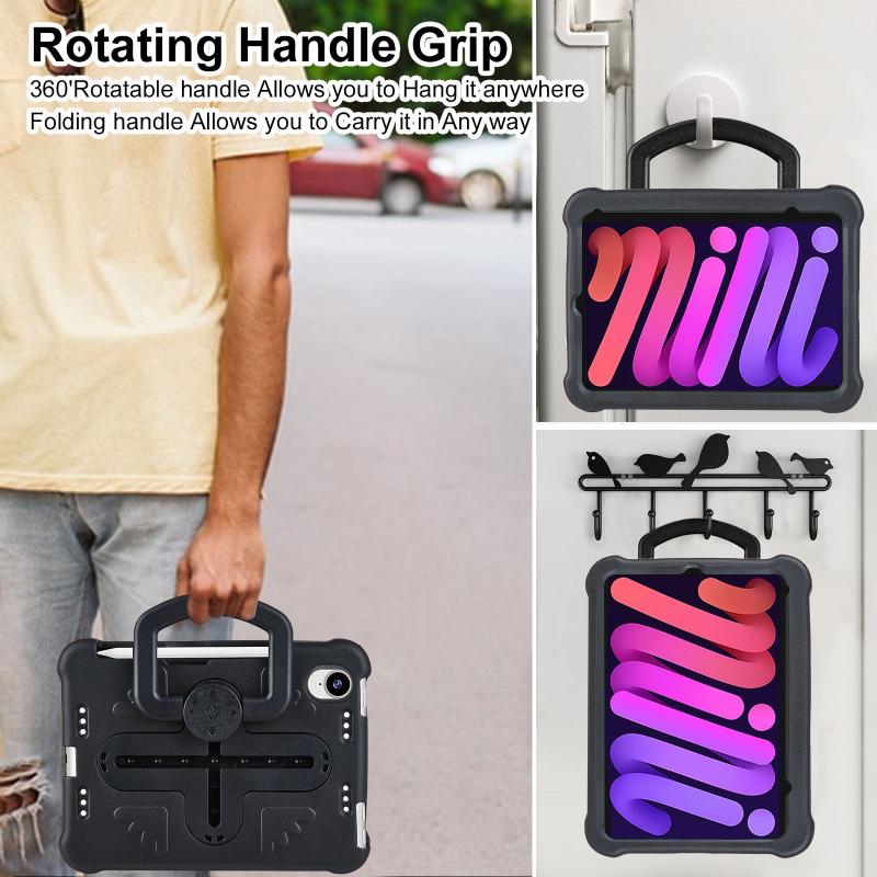 For iPad mini 6 2021 / mini 2024 Shield 360 Rotation Handle EVA Shockproof PC Tablet Case(Black)