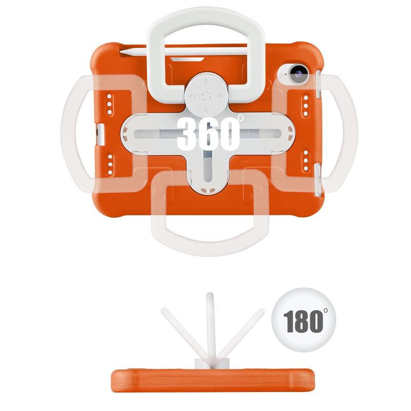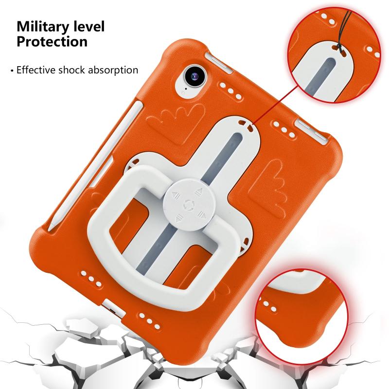 For iPad mini 6 2021 / mini 2024 Shield 360 Rotation Handle EVA Shockproof PC Tablet Case(Orange Beige)