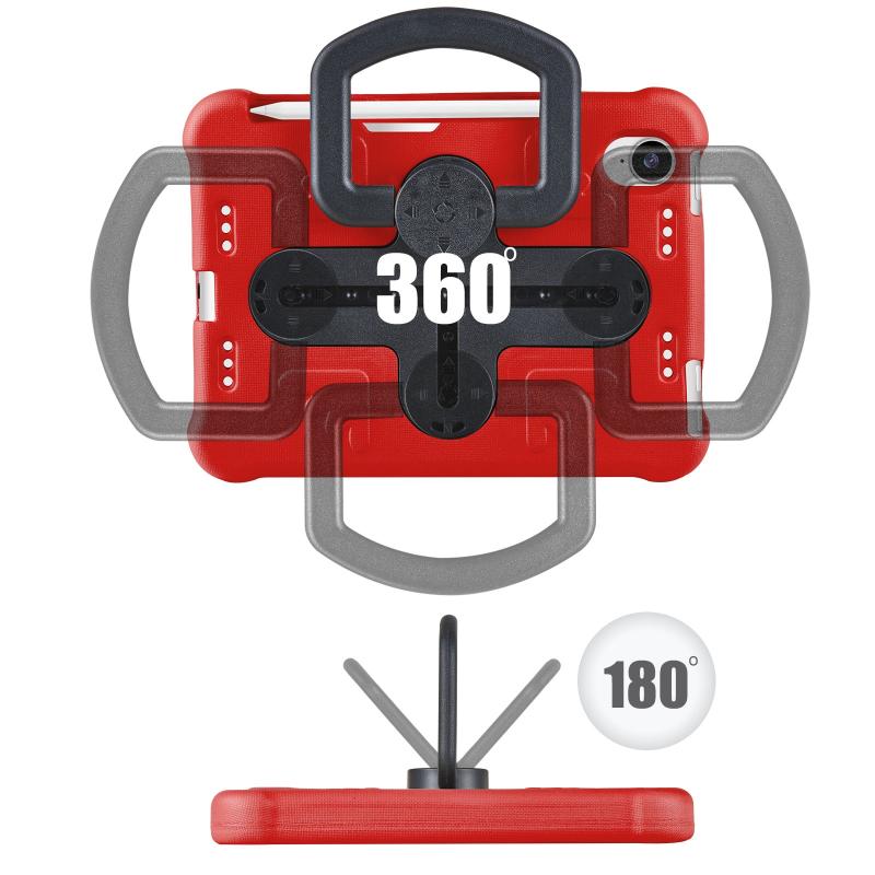 For iPad mini 6 2021 / mini 2024 Shield 360 Rotation Handle EVA Shockproof PC Tablet Case(Red Black)