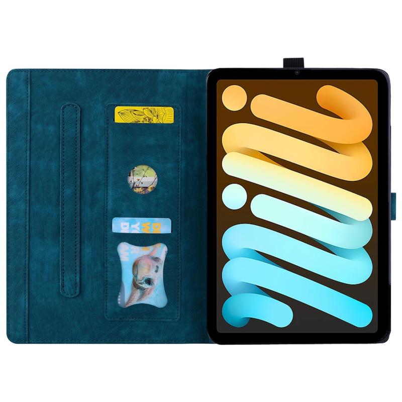 For iPad mini 6 / mini 2024 Cartoon Sakura Cat Embossed Smart Leather Tablet Case(Blue)
