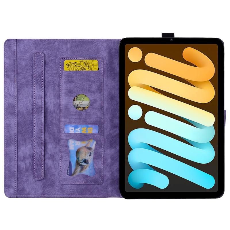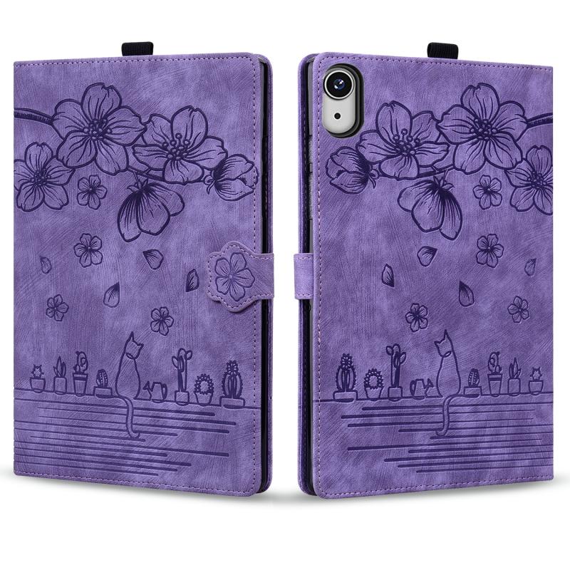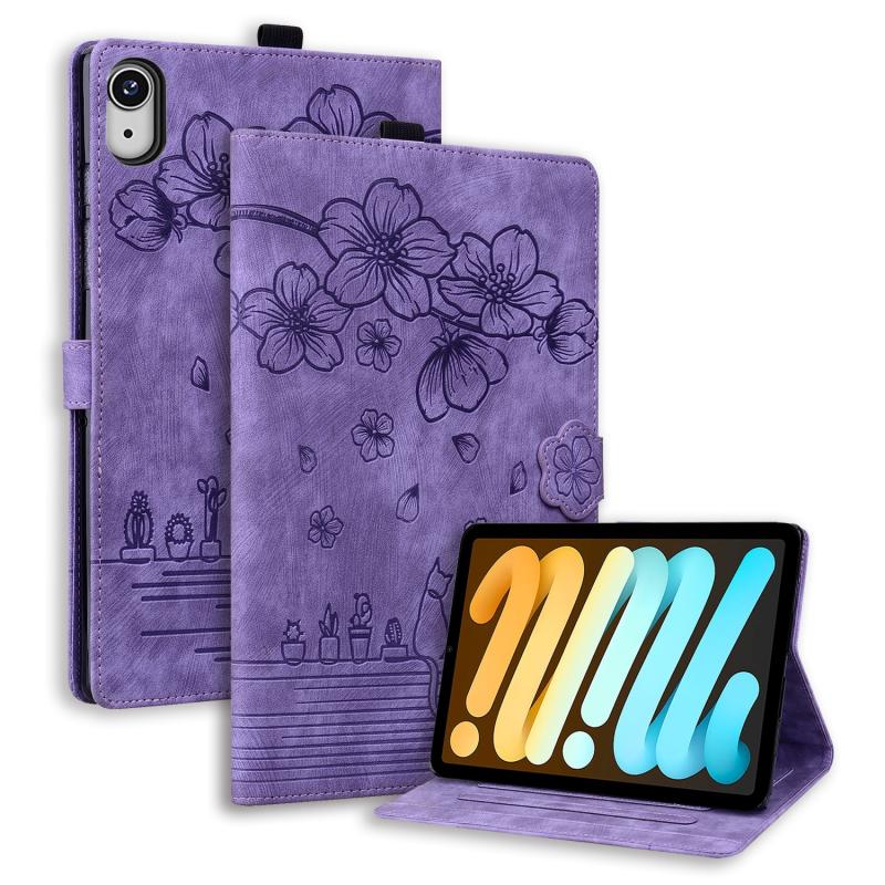 For iPad mini 6 / mini 2024 Cartoon Sakura Cat Embossed Smart Leather Tablet Case(Purple)