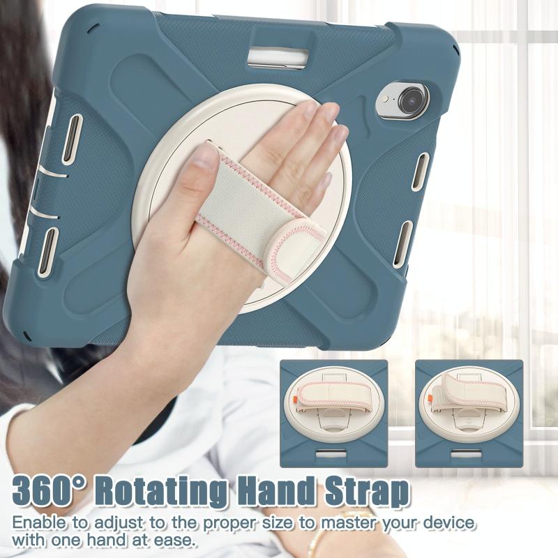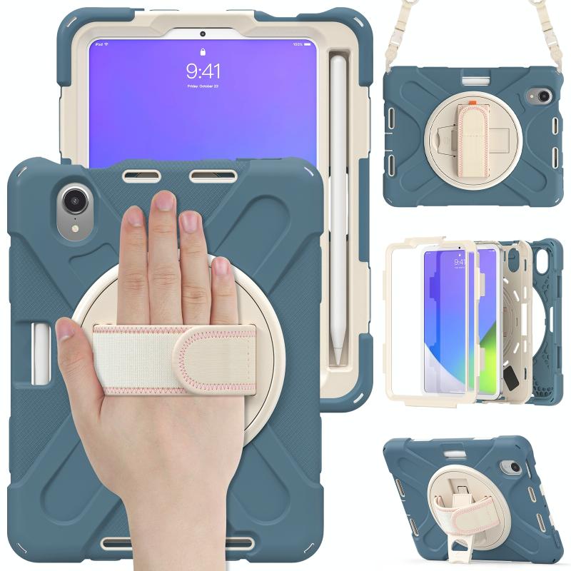 For iPad mini 6 / mini 2024 Silicone Hybrid PC Tablet Case with Grip Holder & Shoulder Strap(Cornflower Blue)