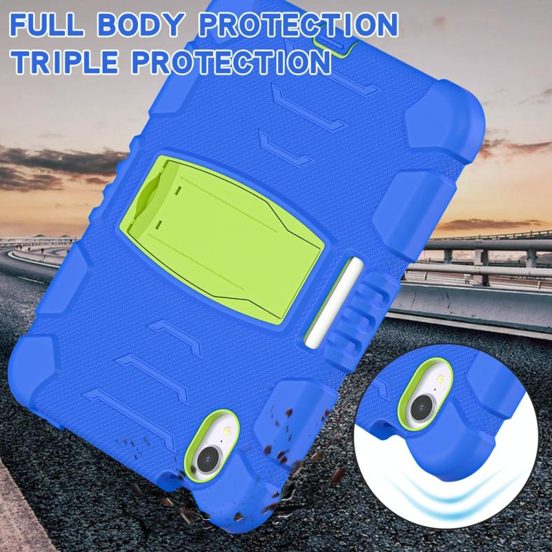 For iPad mini 6 / mini 2024 Tri-Layer Protection Screen Frame Heavy Duty PC Hybrid Silicone Case with Holder(Blue+Lime)