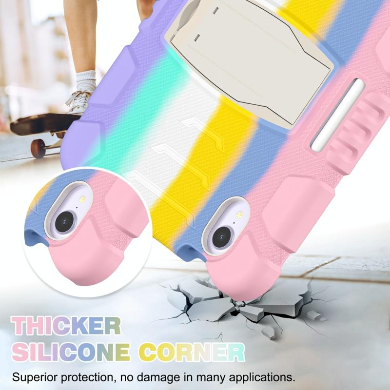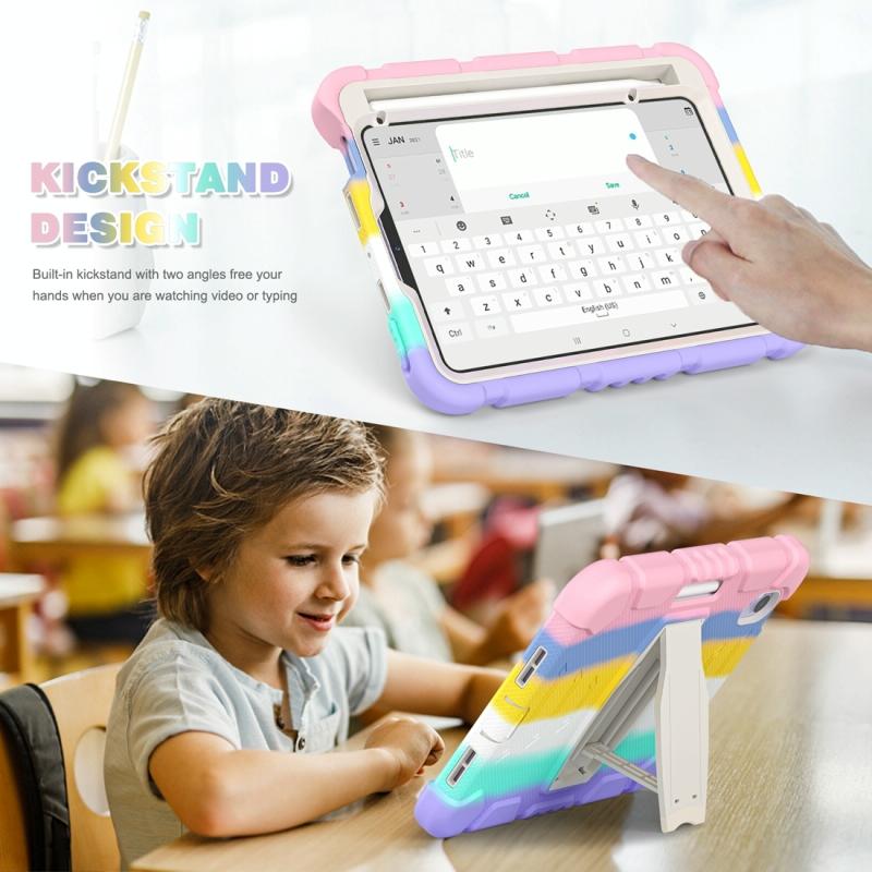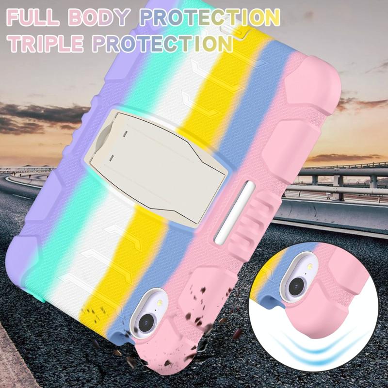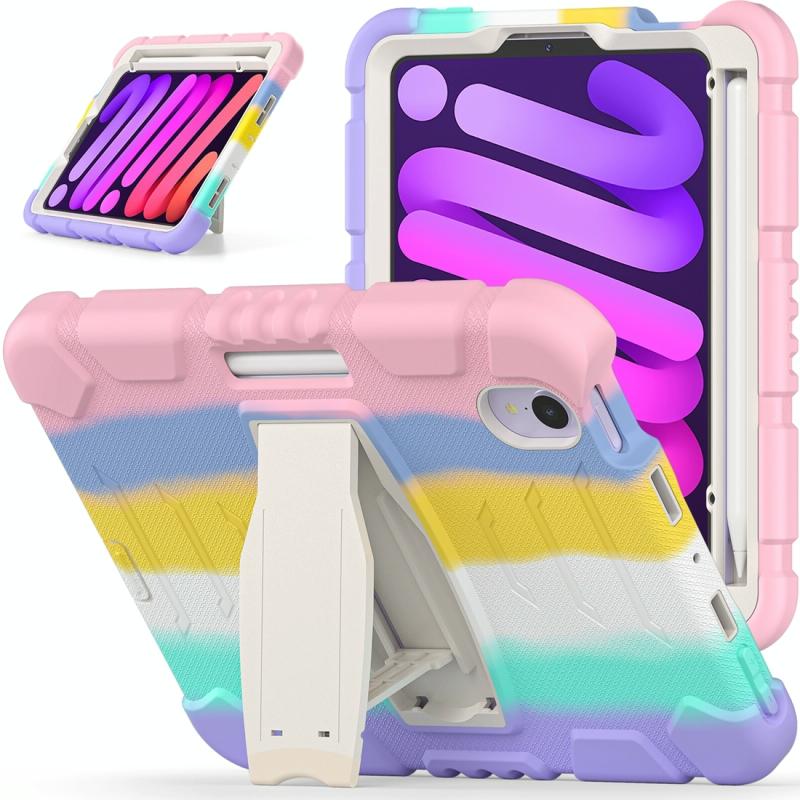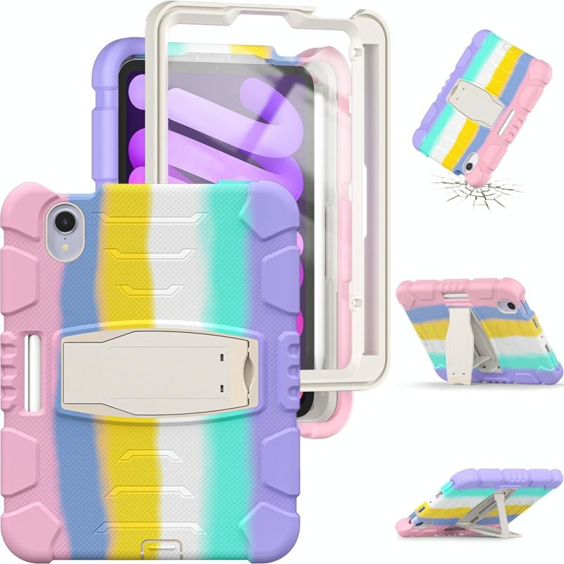 For iPad mini 6 / mini 2024 Tri-Layer Protection Screen Frame Heavy Duty PC Hybrid Silicone Case with Holder(Colorful Pink)