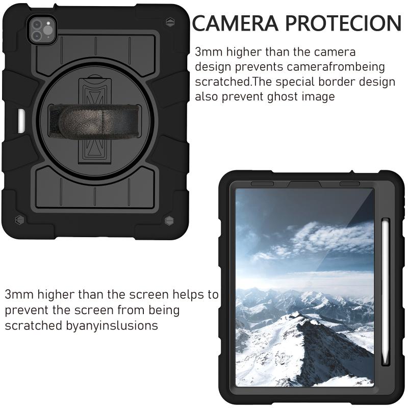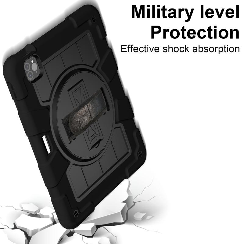 For iPad Pro 11 2018 / 2020 Silicone Hybrid PC Shockproof Tablet Case with Shoulder Strap(Black)