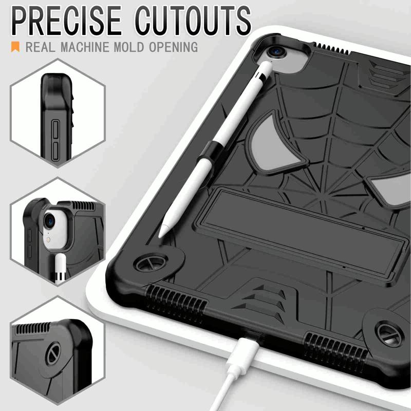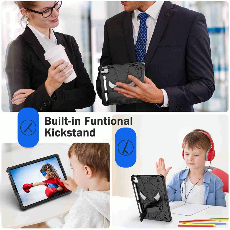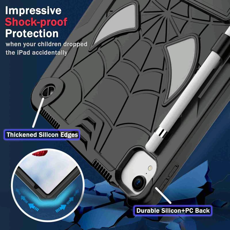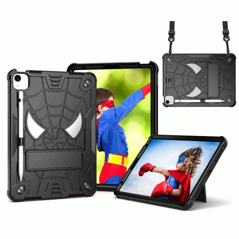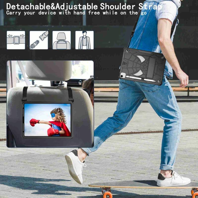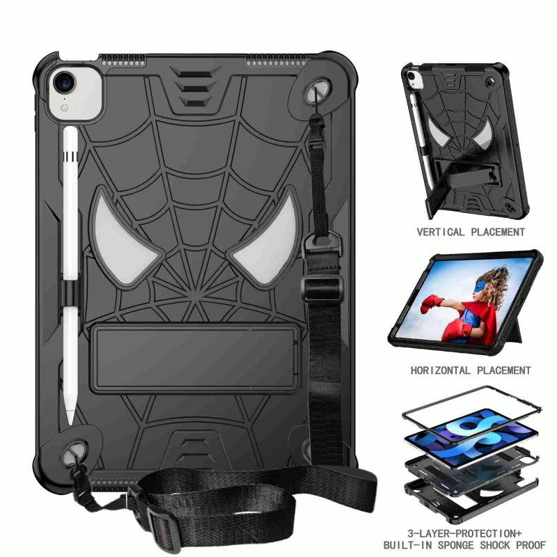 For iPad Pro 11 2021 / Air 5 10.9 Spider Texture Silicone Hybrid PC Tablet Case with Shoulder Strap(Black)