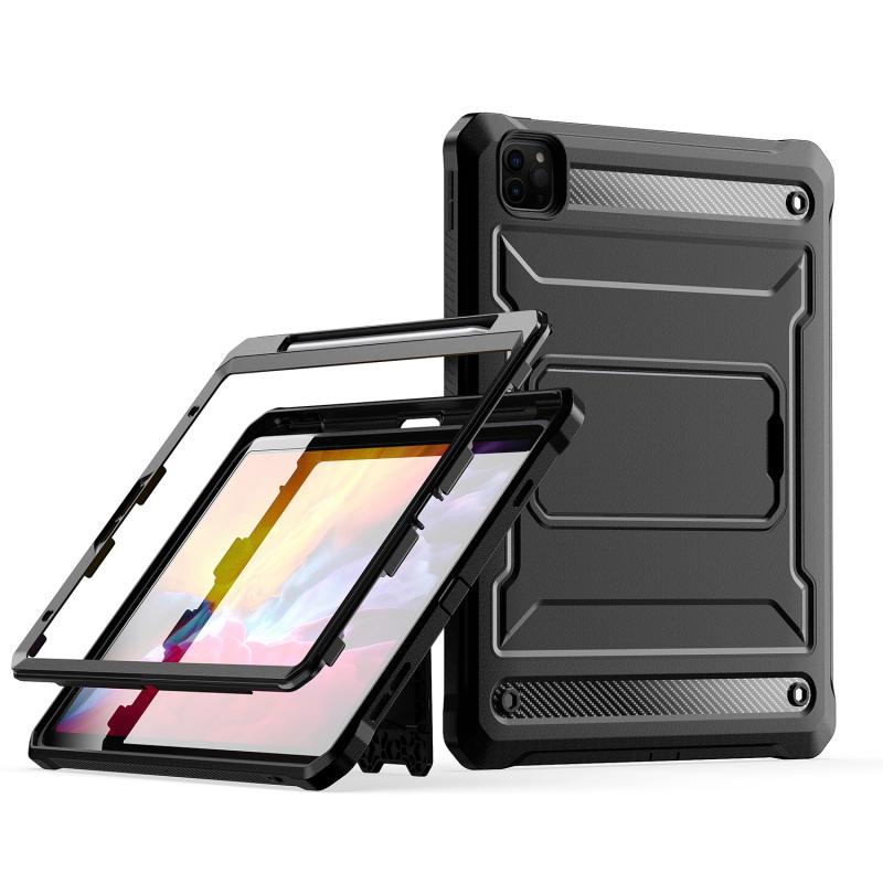 For iPad Pro 11 2022/2021/2020/2018 Explorer Tablet Protective Case with Pen Slot(Black)