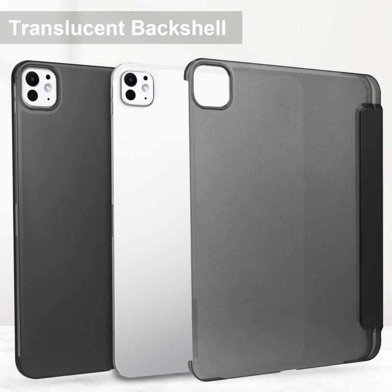 For iPad Pro 11 2024 3-fold Semi-transparent Frosted Smart Leather Tablet Case(Black)