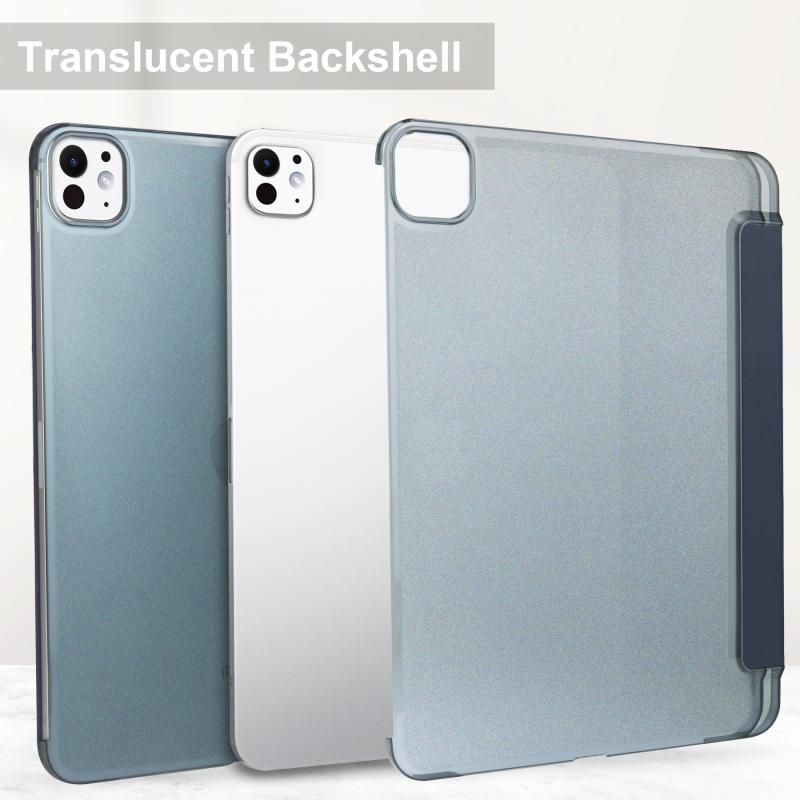 For iPad Pro 11 2024 3-fold Semi-transparent Frosted Smart Leather Tablet Case(Dark Blue)