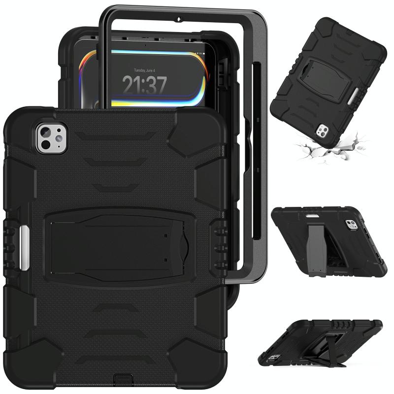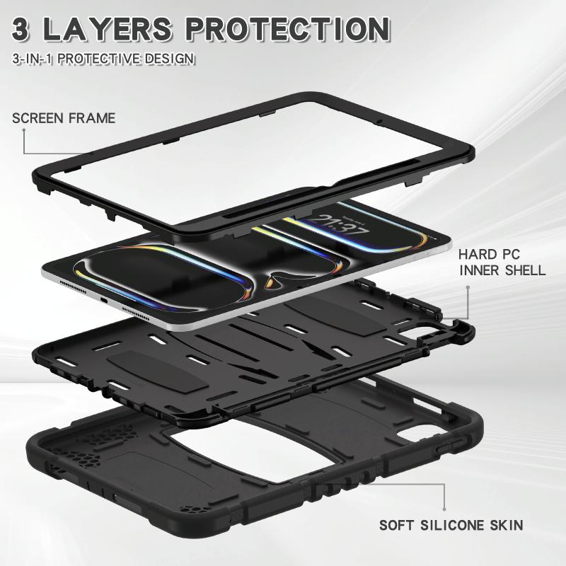 For iPad Pro 11 2024 3-Layer Silicone Hybrid PC Tablet Case(Black)