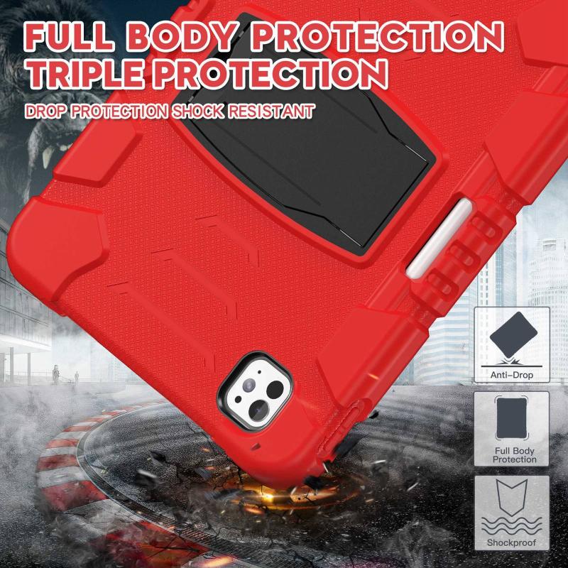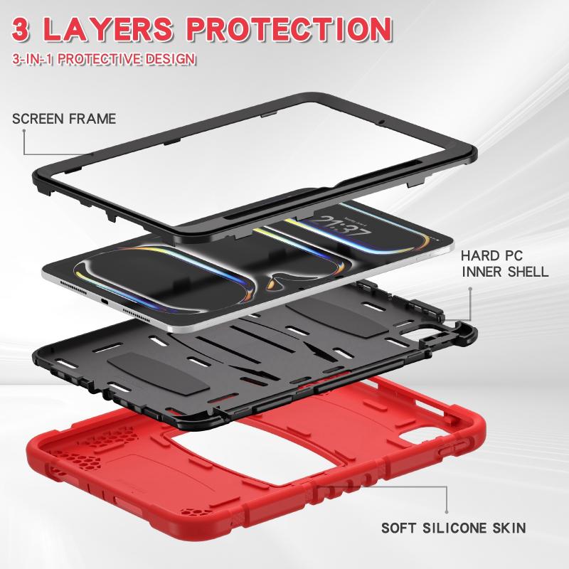 For iPad Pro 11 2024 3-Layer Silicone Hybrid PC Tablet Case(Red Black)