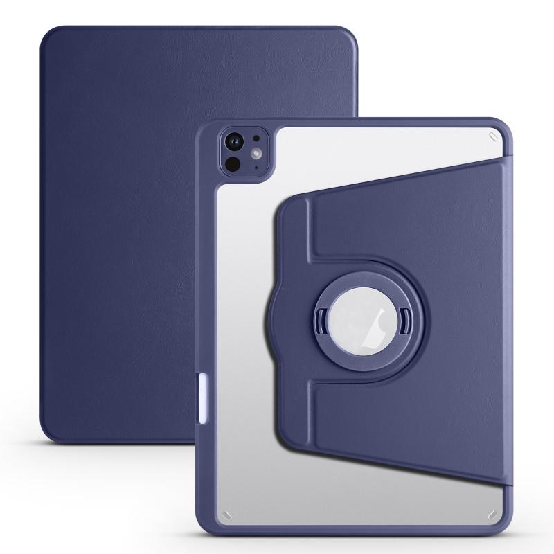 For iPad Pro 11 2024 Acrylic 360 Rotation Detachable Leather Tablet Case(Dark Blue)