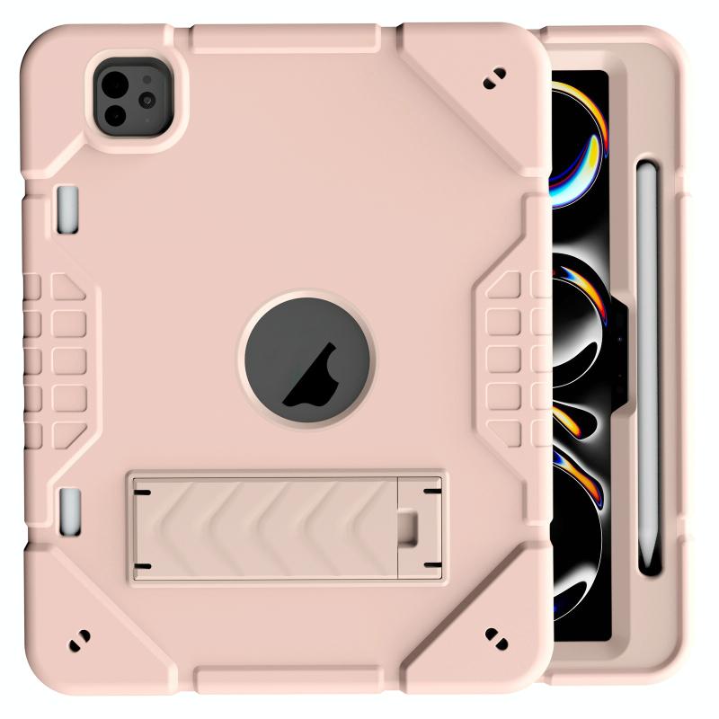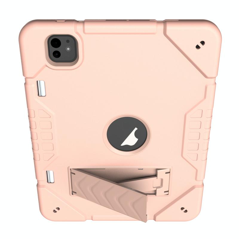 For iPad Pro 11 2024 Armor Holder Silicone Hybrid PC Tablet Case(Rose Gold)