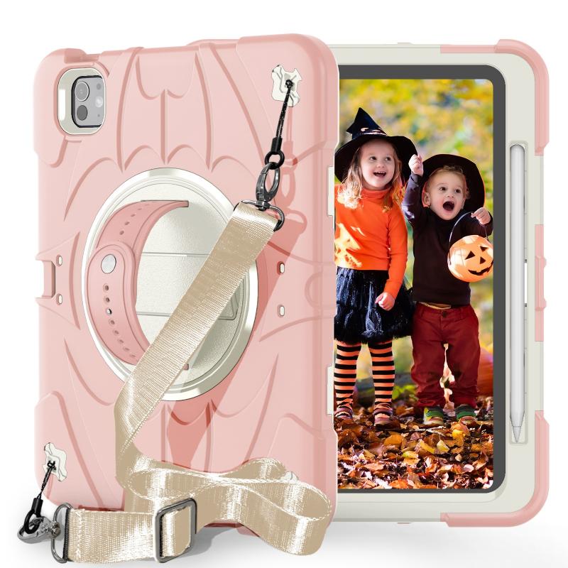 For iPad Pro 11 2024 Bat Hand Grip Turntable Stand Tablet Case(Pink White)