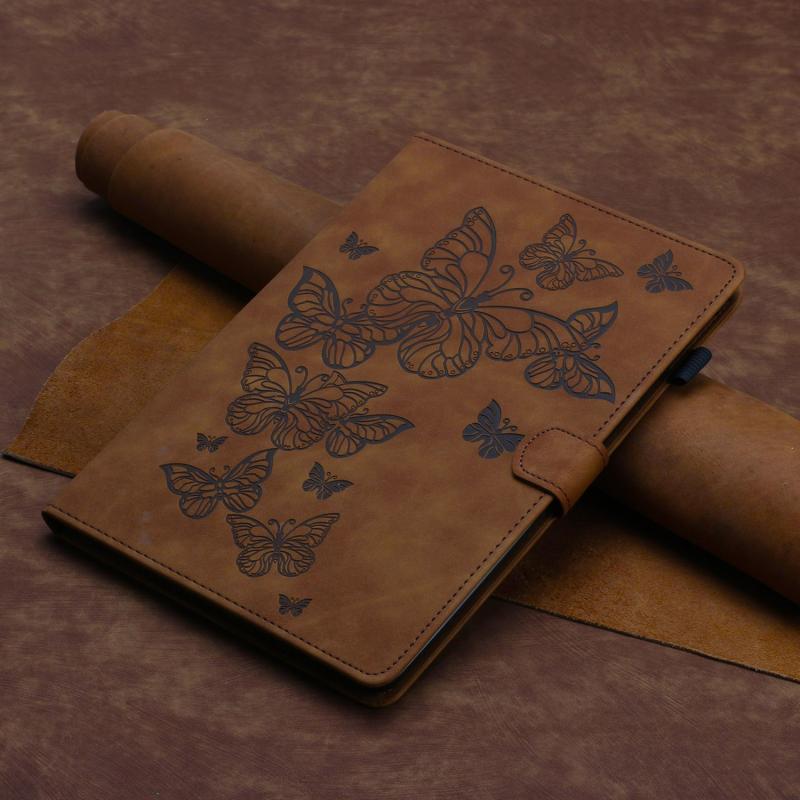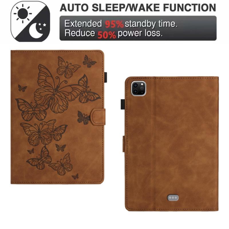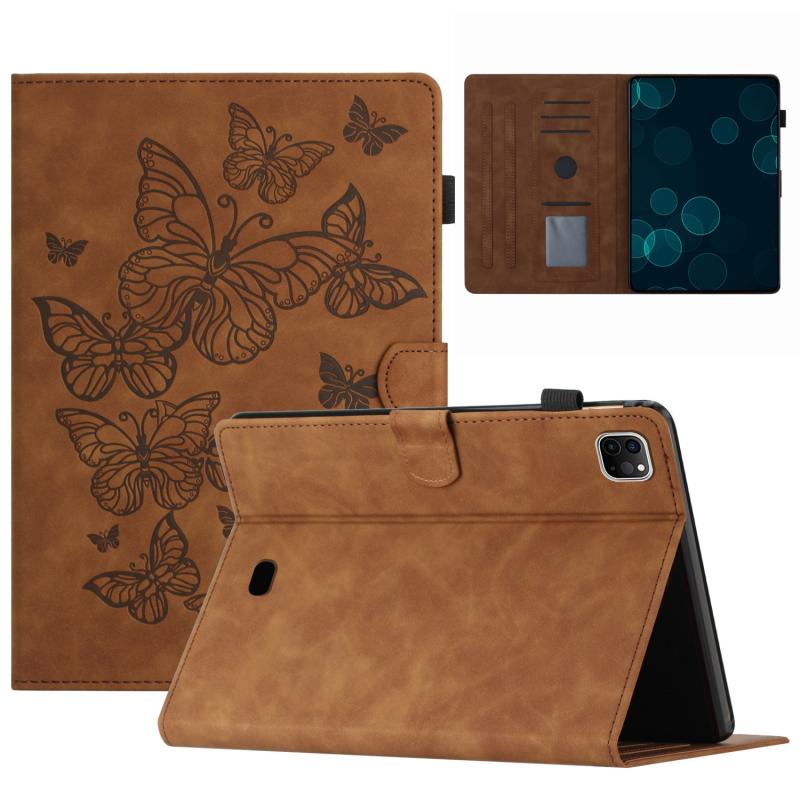For iPad Pro 11 2024 Butterflies Embossed Leather Smart Tablet Case(Brown)
