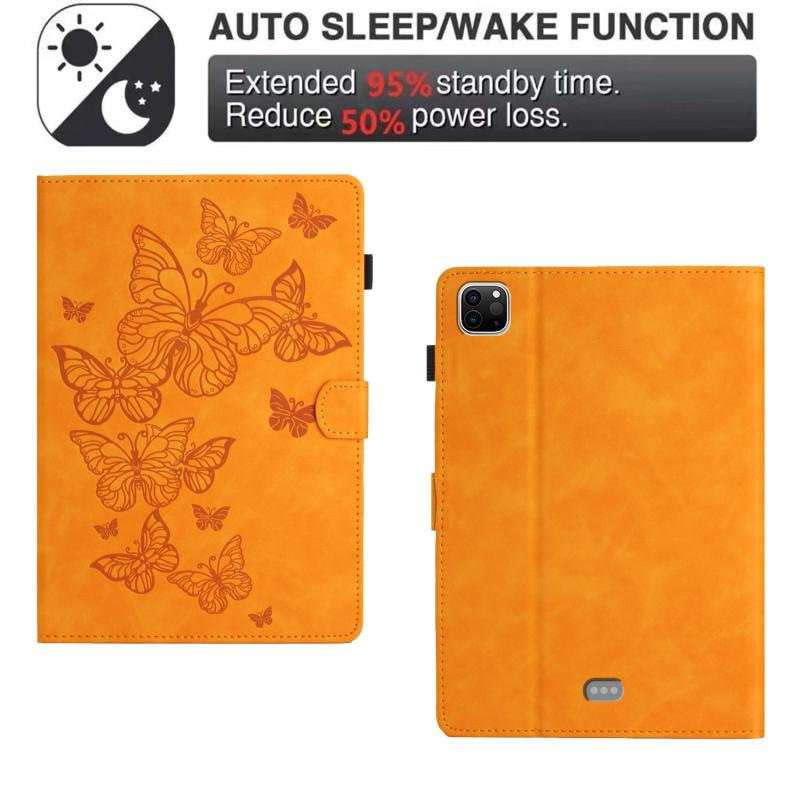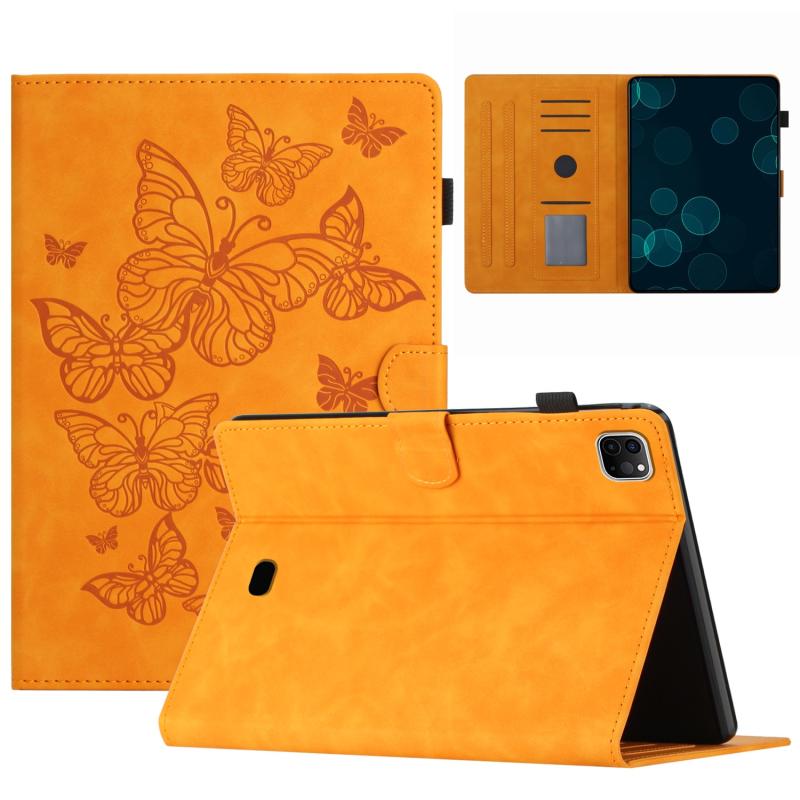 For iPad Pro 11 2024 Butterflies Embossed Leather Smart Tablet Case(Yellow)
